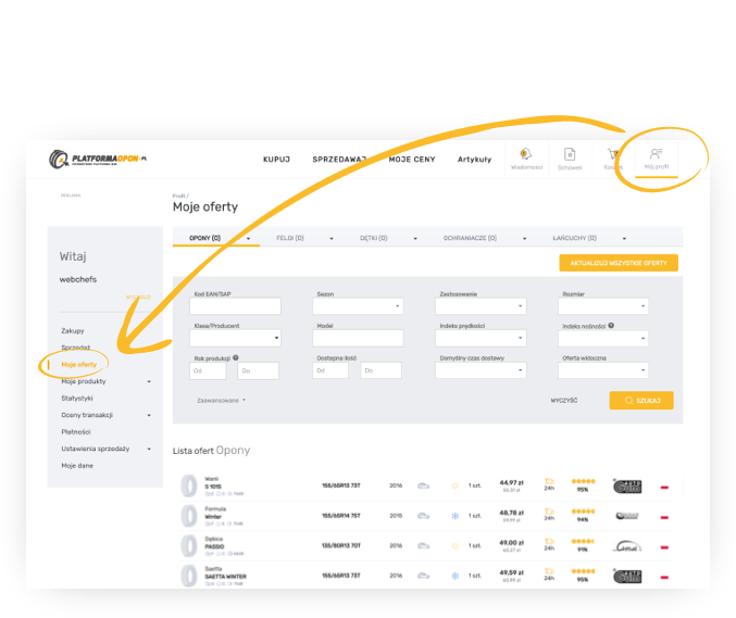 Oferty dodane zarówno ręcznie, jak i z pliku CSV możesz przeglądać, edytować i usuwać w panelu Mój profil – zakładka Moje oferty w menu po lewej stronie.